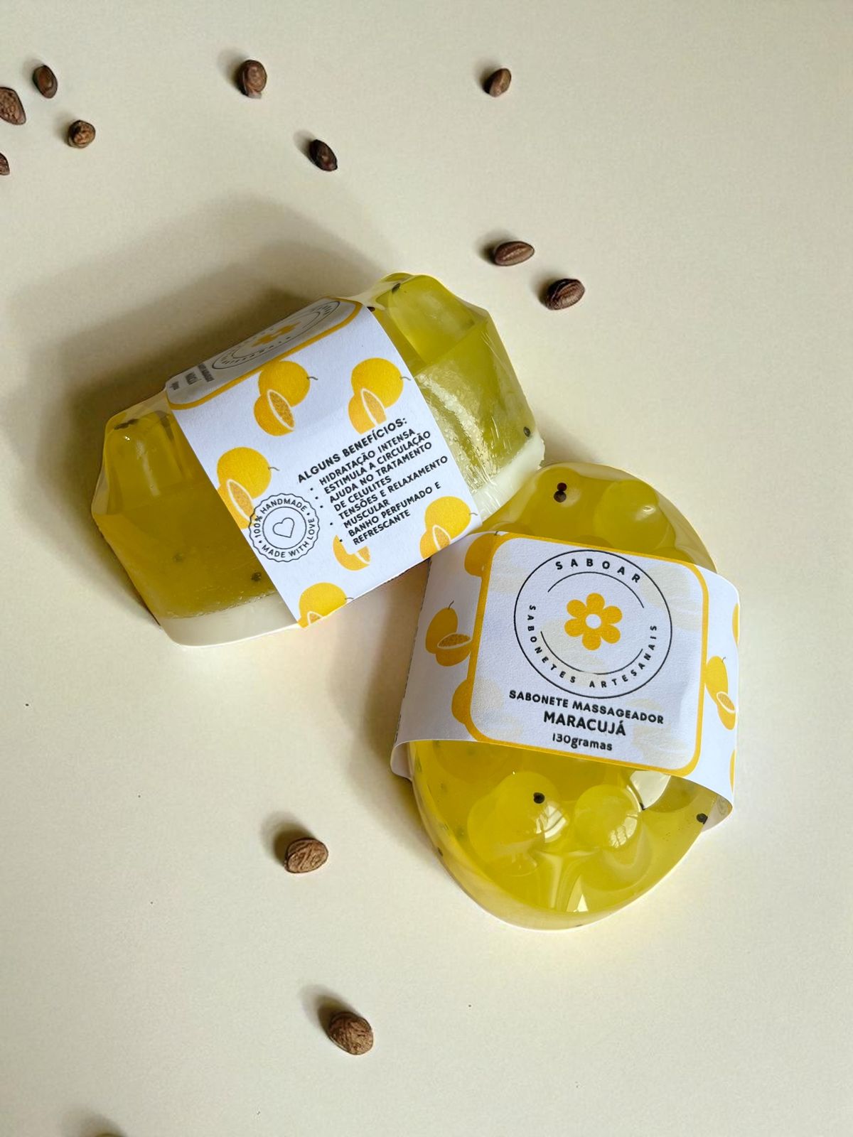 Deixe-se envolver pelo aroma tropical e irresistível de maracujá com nosso sabonete artesanal massageador. Cada peça é feita à mão, com carinho, e pensada para oferecer mais do que limpeza: é um momento de cuidado, relaxamento e prazer.