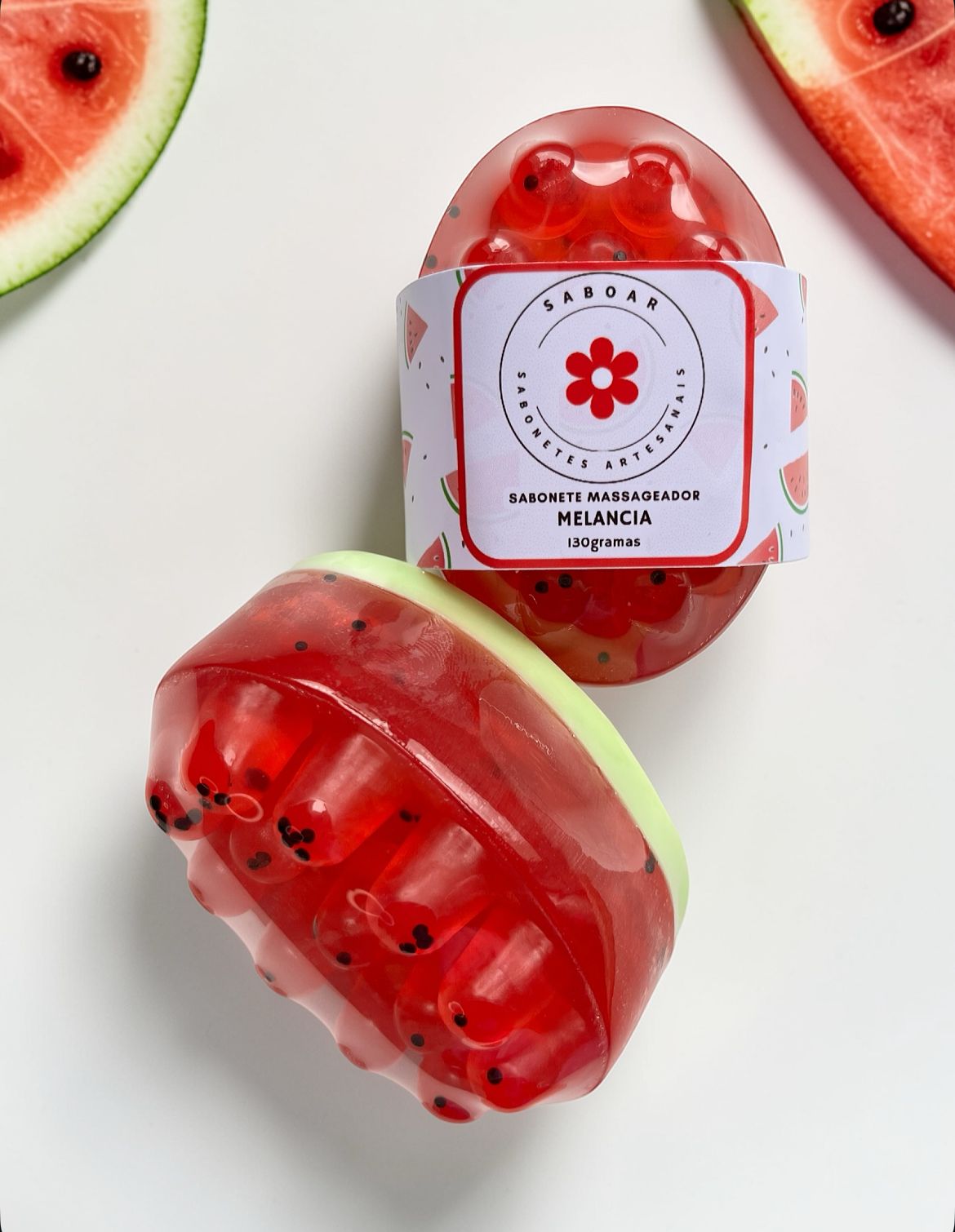 Deixe-se envolver pelo aroma tropical e irresistível da melancia com nosso sabonete artesanal massageador. Cada peça é feita à mão, com carinho, e pensada para oferecer mais do que limpeza: é um momento de cuidado, relaxamento e prazer.